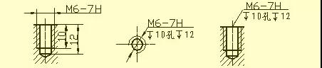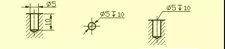 用鉆頭鉆出的盲孔,在底部有一個(gè)120°的錐角,鉆孔深度指的是圓柱部分的深度,不包括錐坑。在階梯形鉆孔的過(guò)渡處,也存在錐角120°圓臺(tái),其畫法及尺寸注法。