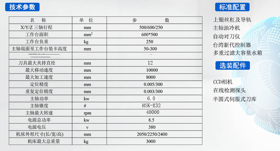 HSK4萬轉(zhuǎn)速主軸:提供高轉(zhuǎn)速的同時,還能提供不錯的扭矩輸出,特別適合加工表面光潔度要求較高的石墨模具等。